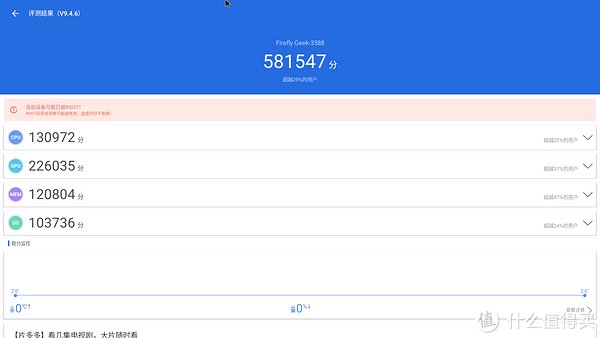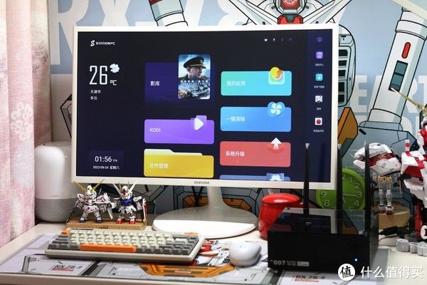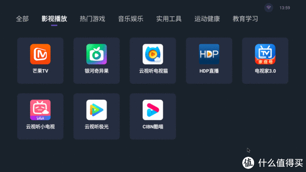 看完外观,接下来就是通电开机了,通电刚开机的时候风扇的转速很高,声音也比较大,我也是着实吓了一跳。开机第一步是适配遥控、系统设定这些步骤,这里就跳过了。Geek-3588主机预装的是基于Android12定制的StationOS系统,也就是我们图片中看到的画面。从整体的体验上来看,这个系统还是比较简约流畅的,图标风格和我们的电视UI差不多,交互方面也比较简单,新手也是能快速的上手使用的。系统还有影库功能,可以在里面直接播放自带的电影资源。